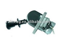 this hand brake valve is fit for both STEYR and HONGYAN, with 3 holesORIGINAL NO.:961 723 004 0PORTS:1,2=M16X1.5